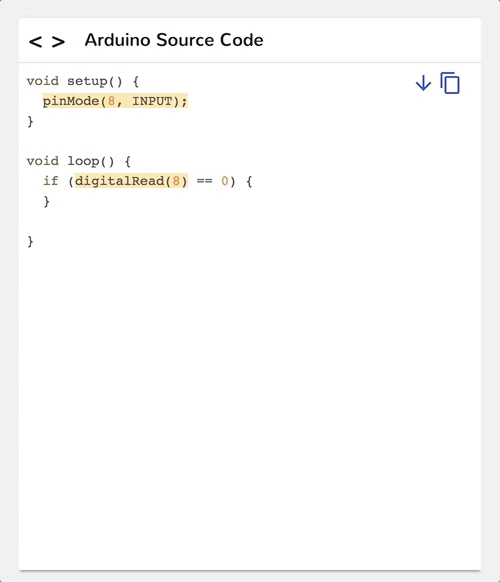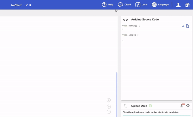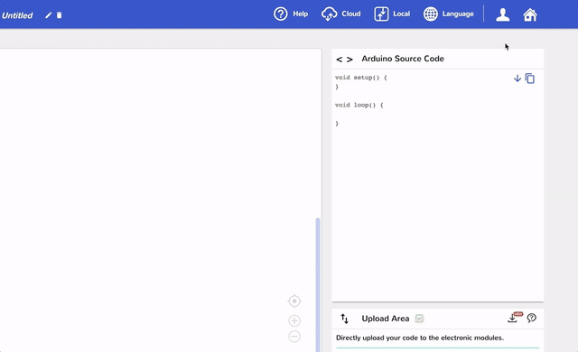 Source Code Area: When you drag block to coding workspace, this area will automatically generate Arduino source code for reference.